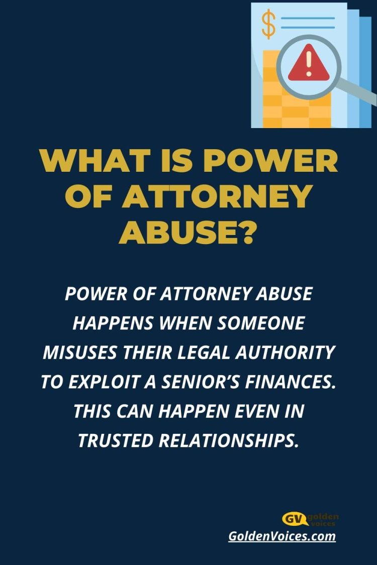 Therefore, power of attorney abuse is causing financial harm to someone (in this case, a senior) using a power of attorney.